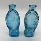 Set Of 2 Turquoise Aqua Blue Glass Fish Bottle Bitters Fischs
