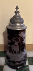 Ludwigsthal Ruby Cut To Clear Beer Stein Deer Scene Stamped, Signed Germany