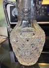 Antique Silver Overlay Glass Pitcher Floral Pattern - Victorian Style