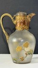 Victor Saglier French Art Nouveau Claret Jug Frosted Glass & Gilt Metal C.1900