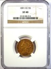 1891-cc Liberty Gold Half Eagle $5 Carson City Coin - Certified Ngc Xf45 (ef45)