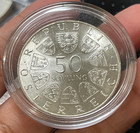 1973 Austria 50 Schillings Silver Coin Excellent Condition 0.5787 Oz Asw