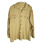 Vintage Boy Scouts Of America Shirt Mens Medium Olive Loop Collar Polyester Wool
