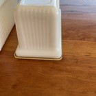 Vintage Milk Glass Leftover/ Butter Containers W/ Plastic “leftovers” Lids Pair