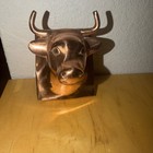 Vintage Copper Cow Bull Head Farm Kitchen Towel Apron Holder Hanger Wall Mount