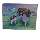 Vintage Foil Art Print Hereford Cow & Calf Sharing A Tender Moment 1989 10 X 8