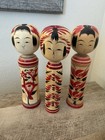Vintage Japanese Kokeshi Dolls Wood Red Black 9.75” Wooden Japan Lot Of 3