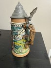 Vintage Western Germany 10" Pewter Stoneware Lidded Stein *free Ship*
