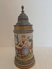 Vintage Gerz German Beer Stein Zinn Pewter Lid Bavarian Relief Germany Farmers