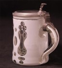 18th Century German Faience Hand Painted Pewter Mounted Tankard 1754 Maker Mark