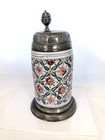 German Beer Stein Pewter Top Dgbm Marked. 7 3/4” Tall. West Germany