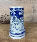 Vintage Blue & Gray Salt Glaze Beer Stein Tavern Scene Germany