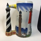 Lighthouse Stoneware Stein Mug 7” Hand Painted Embossed