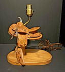 Vintage Western Saddle Lamp Leather & Blonde Wood Working Lamp No Shade