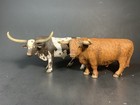 Schleich D-73527 Longhorn Bull And Highland Bull Figure Lot Of 3 Brown Spotted