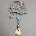 Old Vintage Cast Sterling Silver Turquoise Squash Blossom Necklace Hearts