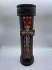Beautiful Set Of 3 Rustic Wood Candle Holders Brass Studs Turquoise & Red Cross
