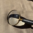 Antique Round Magnifying Glass W/brass & Black Engraved Handle 10.5l X 4” Dia