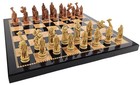 Egyptian Anubis Black Silver And Gold Chess Set W/ 16" Hieroglyphics Board