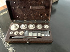 Vintage Ohaus Brass Scale Weights Complete Set Wooden Holder Very Nice!