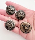 10 Picture Button Flower Floral Moon Star Design Metal 1 Piece Embossed Vintage