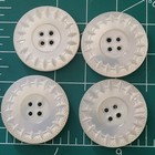 4 Antique Matching X Lg Round Mother Of Pearl 4 Hole Heavily Carved Thick Sun