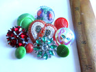 Czech Glass Mixed Lot 10 Vintage 2 Rhinestone Buttons Shades Of Red & Green