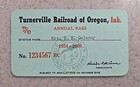 Turnerville Railroad Of Oregon Annual Pass Named 1954–2000 Vintage
