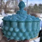 Vintage Fenton Turquoise Blue Pastel Hobnail Milk Glass 1950’s Powder Jar Rare