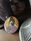 Satin Blue Glass Dermay Victorian Lady Powder Jar Vtg 1920's-1930's