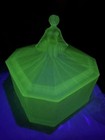 Uranium Glass 1930 Powder Box Finial Is A Nude Woman, 4 Corner Panels Nudes