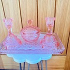 Vintage Art Deco Pink Depression Glass Dressing Table Vanity Set, 6 Piece