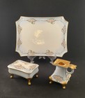 Vtg Handpainted Porcelain 3 Pc Dreser Set