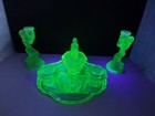 Art Deco Uranium Glass Vanity Set.