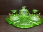 Art Deco Seven Piece Uranium Green Glass Dressing Table Vanity Set & Tray