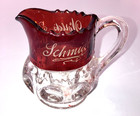 Vtg 1893 World's Fair Ruby Flash Glass Pitcher Creamer Toothpick Dj Schmidt