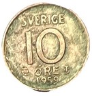 Very Nice Details 1940 Sweden 10 Ore Coin-jan055