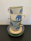 Zimbabwe Elephant Safari Pottery Tea Cup Saucer Hand Painted Folk Art 8pc 2000