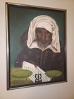 Vintage Islamic Art, Imam Portrait An Arresting Face, Oil Painting Framed Signed