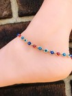 14k Gf Anklet Bracelet Evil Eye For Protection, Pulsera Para Pie Mal De Ojo Moda