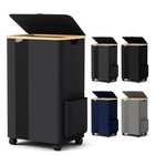 Bamboo Clothes Organizer Storage Shelf For Laundry Room, Tilt Out Laundry Basket