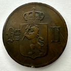 1876 Norway 5 Ore Coin, 27mm, Bronze, Xf Extremely Fine