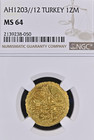 1801 (ah1223/12) Turkey Gold Zeri Mahbub Of Selim Iii Ngc Ms-64 Top Pop 1 Of 2
