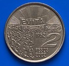 Argentina $2 Pesos Conmemorative Coin 2002 Eva Duarte Peron (evita) Scarce