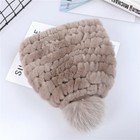 Luxury Women Rex Rabbit Hair Beanie Hats Lady Winter Warm Cap With Fox Pom Pom