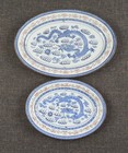 2 1970s Jingdezhen Porcelain Rice Ware Dragon Gold Rim Serving Platters