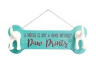 Teal Bone Shaoed Wooded Dog Leash Holder Home Paw Prints Decor