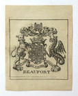 Antique Armorial Bookplate Ex Libris Beaufort Crest Coat Of Arms Lion Dragon