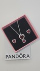 Authentic Pandora Red Halo Hearts Necklace & Earrings Gift Set