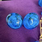 Vintage Murano Blue Glass Bead Necklace & Earrings Set Gold Tone Beautiful